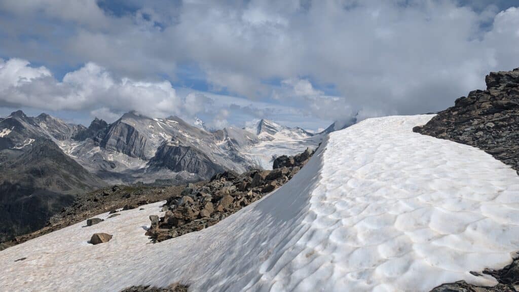 Mai est resté maussade avec plus de 80mm de pluies pour une norme à 50mm, mesurés à la station MétéoSuisse de Mottec, ma référence en vallée. Il restait 1 mètre de neige à 2500m, 2 mètres au-dessus de 2900m, cette couche épaisse persista jusqu’aux chaleurs de la deuxième moitié de juin. L’inalpe fut reportée au 22, encore une journée pluvieuse avec de la grêle sur Nava à 15h. La débacle de la Navizence la veille vola la vedette aux vaches, elle s’avéra autant ravageuse que celle de 2018. Deux crues centennales en six ans, on en a de la chance avec le temps, pour citer le slogan actuel d’Anniviers Tourisme.