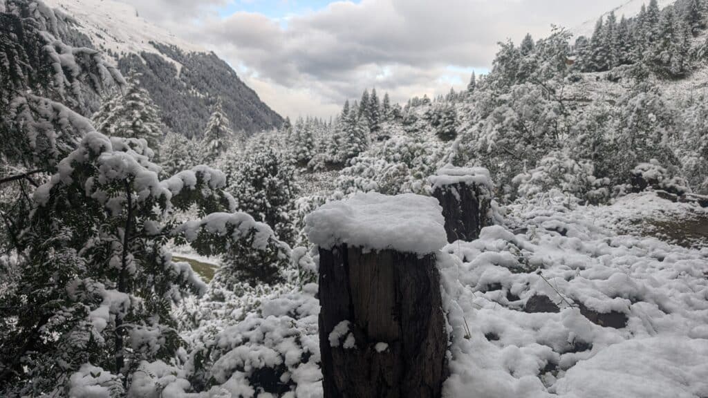 L’article Janvier 2024 s’étonnait des nombreuses souris rencontrées sur les pistes, ça arrive parfois près des bâtiments, je me souviens même d’en avoir vu tomber d’un parapente au décollage, mais si souvent au milieu des pistes? J’en avais déduit qu’elle profitaient d’un terrain pas gelé et protégé d’une épaisse couche de neige. Cet été, c’est la prolifération des écureuils qui a d’abord étonné, les souris sont devenues envahissantes dès septembre. J’ai l’habitude de piéger celles qui s’installent autour du mayen en automne, j’avoue cinq souricides par jour les trois premières semaines d’octobre, du jamais vu. Corrélation certaine, mes caméras n’ont plus capté d’hermine ni de fouine, et les rapaces furent rares en vallée cet été, je les imaginais chasser plus haut profitant de la douceur. Toute cette humidité a également favorisé les champignons de toutes sortes, nous avons cueilli des morilles début mars, les chanterelles sont restées abondantes jusqu’en octobre, comme les pieds-bleus, éperviers et autres cadeaux des bois. Seuls les bolets qu’on appelle cèpes furent relativement discrets.