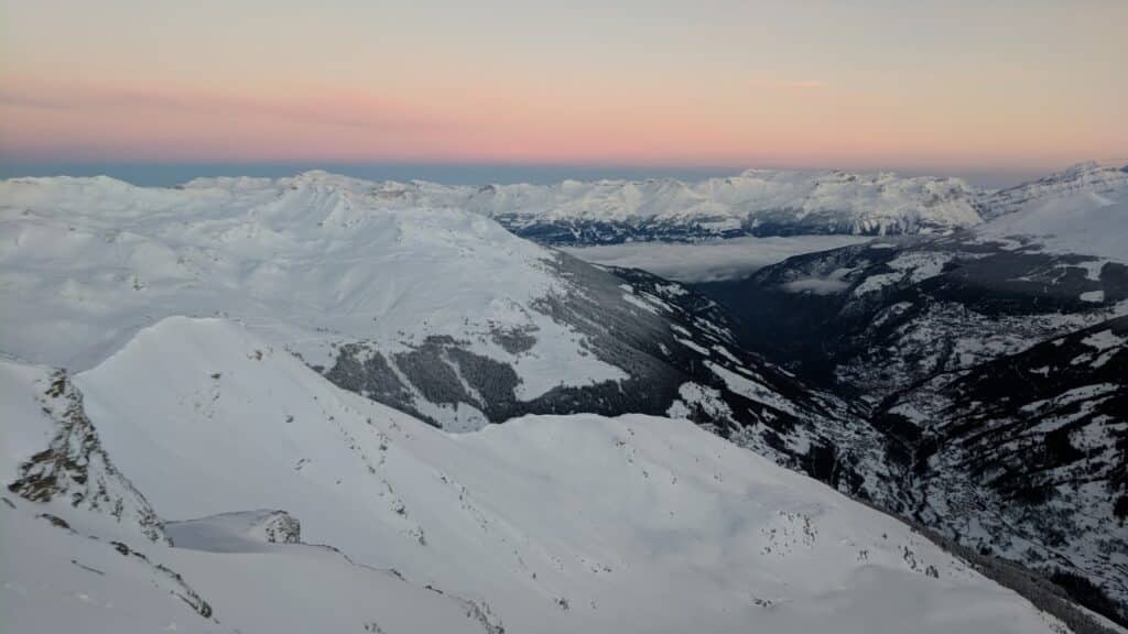 Depuis la fermeture générale du 14 mars, les conditions printanières sont, hélas, idéales pour la randonnée. Les hautes températures mouillent la neige la journée et le ciel nocturne dégagé fige le manteau. En-dessus de 2200m, la quantité de neige ne permet pas à l’humidité de pénétrer en profondeur, la masse reste stable. Jusqu’à 2600m, les pentes exposées au sud sont dégagées, souvent purgées par les minages près des domaines skiables.