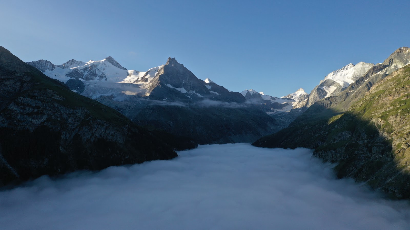 Le drone est avant tout une caméra volante, les images sont belles et autant stables que sur trépied. On peut l’envoyer par curiosité pour simplement voir ce qui se passe, comme ce matin bouché de juillet quand je me demandais où se situait le plafond nuageux. Je suis en phase d’apprentissage, l’album public été 2019 est déjà constellé de photos aériennes, je vais essayer de faire quelques montages avec les images maladroitement filmées cet été. Je pense mieux exploiter l’énorme potentiel de cet outil l’hiver prochain. Ci-dessous un premier essai, le rendu a saccadé certains clips, j’étais un rien mystique au montage, certainement la beauté des images. Merci Mylène!