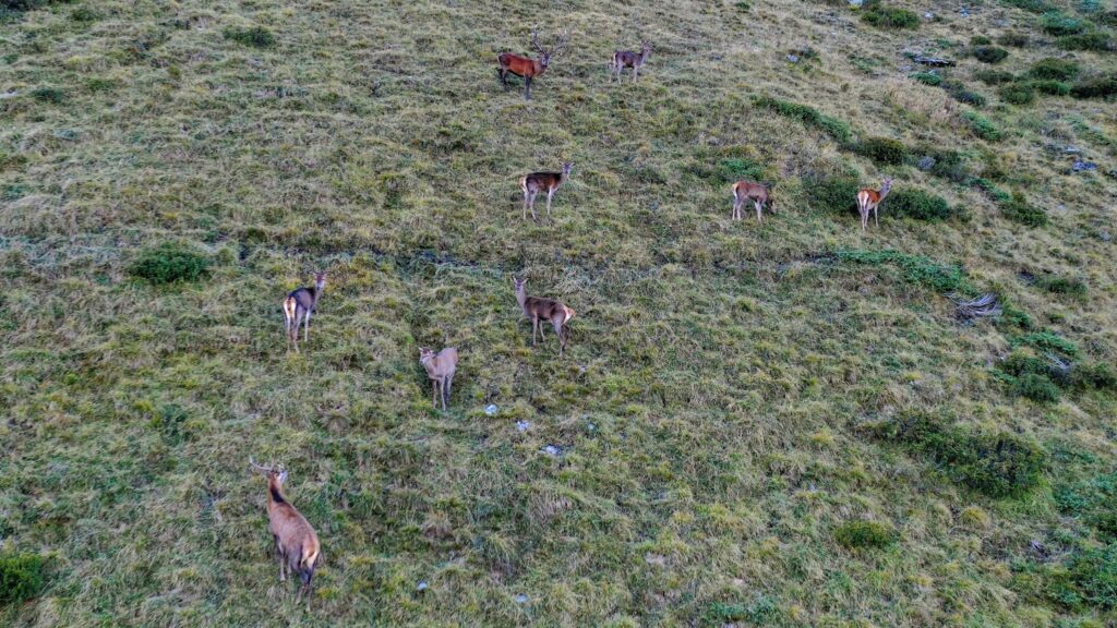 Je conclus ce résumé de l’été par un aveu, j’ai taquiné mes voisins avec mon nouveau drone. Les mâles de toutes espèces sont moins craintifs, chevreuils et boucs semblent plus curieux qu’apeurés par le volatil mécanique jusqu’à une dizaine de mètres. Le cerf est inapprochable en dehors de la période du rut, j’ai alors survolé un groupe sans provoquer de réaction mais n’ai pas insisté. Les chevrettes fuient au bruit, l’approche des chèvres de chamois alerte rapidement la surveillante qui donne l’alerte à une trentaine de mètres. Les marmottes se cachent à longue distance, je n’ai pas taquiné les bouquetins. On sait que le gypaète et l’aigle tolèrent mal les intrus dans leur espace aérien, chaque décollage provoque l’hystérie des casse-noix, le corbeau s’approche, observe puis repart. J’ai également essayé de poser le drone sur des places préparées, ce qui permet une heure d’observation avant le vol de retour. Mais c’est pas bien de déranger la faune avec un drone, je le ferai plus, promis!