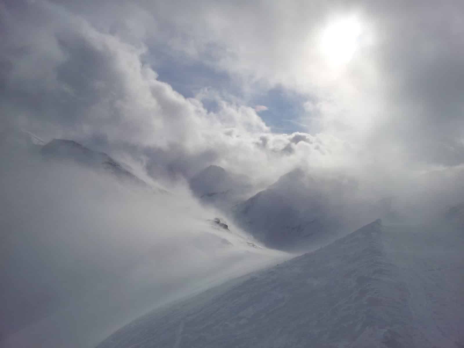 Puis vinrent la neige et les tempêtes, Joachim le 16 décembre et Andréa le 5 janvier qui nous emmenèrent un cumul de plus de 5m avant fin janvier, plus du double de l’hiver passé. Andréa souffla à 153 km/h, se plaçant juste derrière Lothar qui fut mesuré à 168.5 km/h le 26.12.1999. Les vents tassèrent la neige dans les combes et les plats, une couche homogène fortement liée et difficile à déclencher. Les explosifs économisés ces deux dernières saisons trouvèrent de l’emploi, trop souvent pour creuser des baignoires dans un manteau très stable.